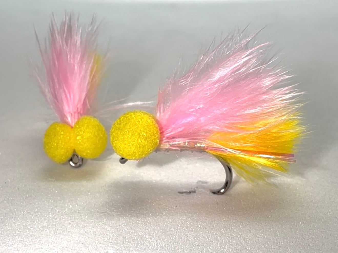 Sunburst tailed Candyfloss Booby is a traditional booby fly crafted to deliver both colour and enticing movement. Its pearl body provides a subtle shimmer that mimics emerging prey, while the coral wing and vivid sunburst tail add vibrant contrast and dynamic motion in the water. This combination makes it an effective attractor for suspending droppers or fishing as a standalone booby on small waters and stocked venues.