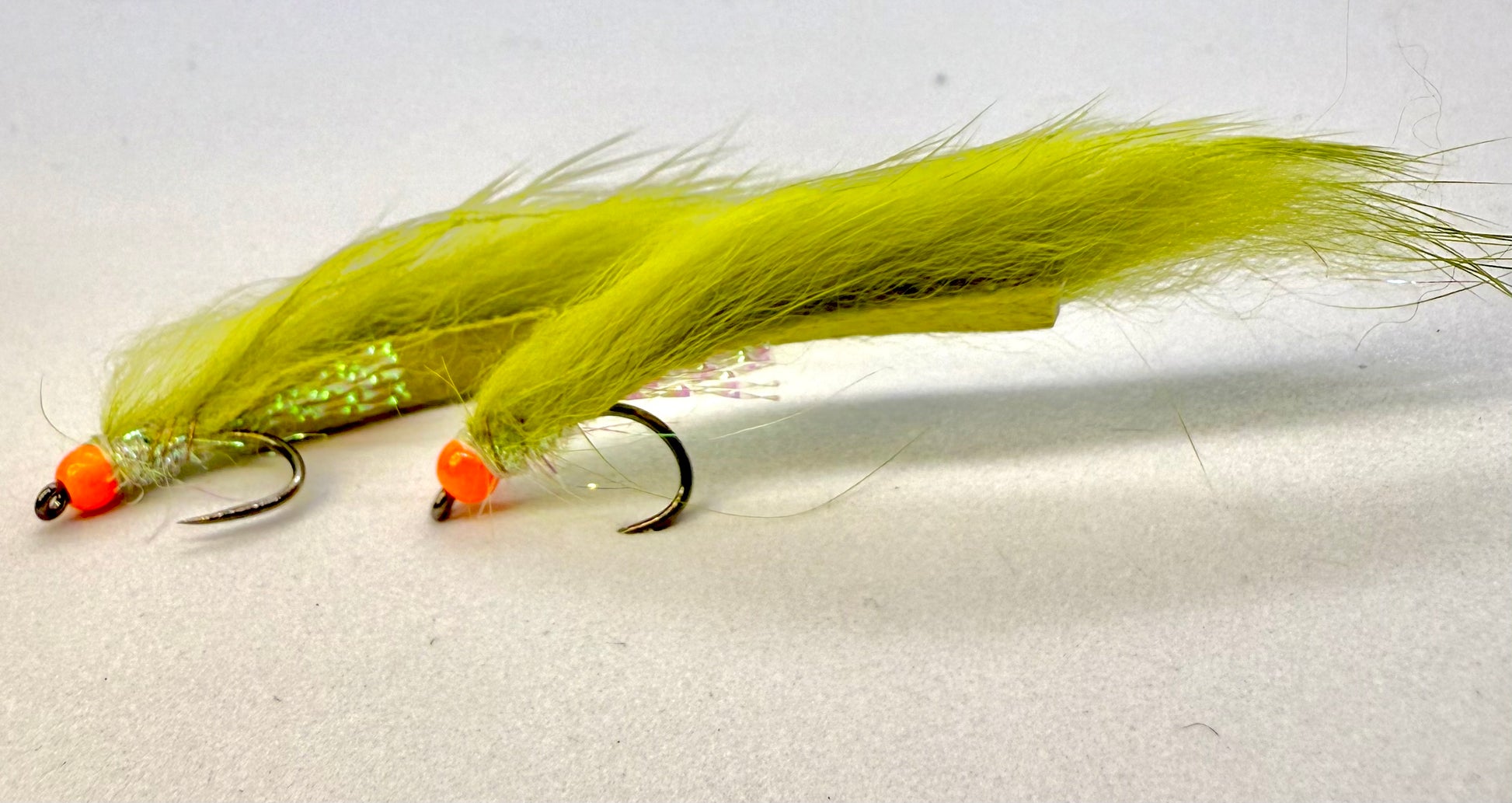 The Olive Minki is a compact fry-style pattern designed to imitate small, vulnerable baitfish. Its olive-coloured body provides a natural, subtle profile that attracts trout on small waters and stocked venues. Perfect for slow or medium retrieves, it works well under a bung or as a single fly on a floating line, enticing strikes from both opportunistic and selective fish. Its lifelike movement and understated colouring make it a versatile and reliable choice when fish are targeting small, suspended prey.