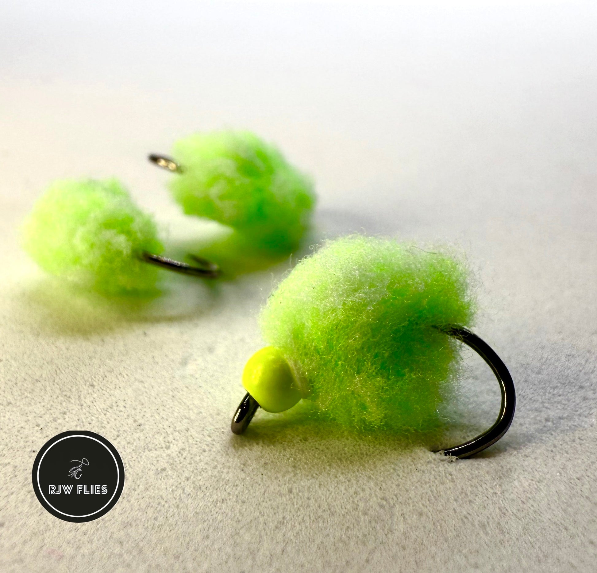 The Scrambled Egg Mojito fly is tied using Chuck N Duck Scrambled Egg material in a refreshing mojito colour, blending soft green and pale tones on a fine core to create a subtle, eye-catching two-tone effect. The gentle, translucent fibres give the fly a natural, drifting appearance while standing out enough to attract trout in small waters. The soft texture produces a pulsing, lifelike movement in the water, mimicking fish eggs and encouraging confident strikes. Perfect for stocked venues and small waters, this fly is an excellent choice when fish are drawn to vibrant, attractive patterns.